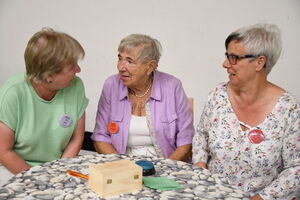Wir haben meist mit den Menschen aus der eigenen vertrauten Stadtteilgruppe zusammen gesessen, aber beim Essenfassen oder den anschließenden Gesprächen und Spielen ergaben sich genug Gelegenheiten, auch Menschen aus anderen Stadtteilen zu treffen.