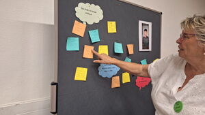 Dummerweise saß ich mit dem Rücken zur Bühne und habe nicht alle Fotos und Videos von den verschiedenen Gruppen gesehen, die während des Essens gezeigt wurden. Aber ein paar Highlights habe ich doch mitbekommen. Das Kreuzworträtsel mit Fragen zu Gelsenkirchen und zu ZWAR-Aktivitäten war nicht ohne die Zusammenarbeit am Tisch zu lösen.